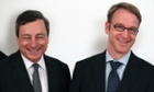 Mario Draghi, president of the European Central Bank, and Jens Weidmann, president of the Bundesbank. Photograph: AFP/Getty Images/Daniel Roland